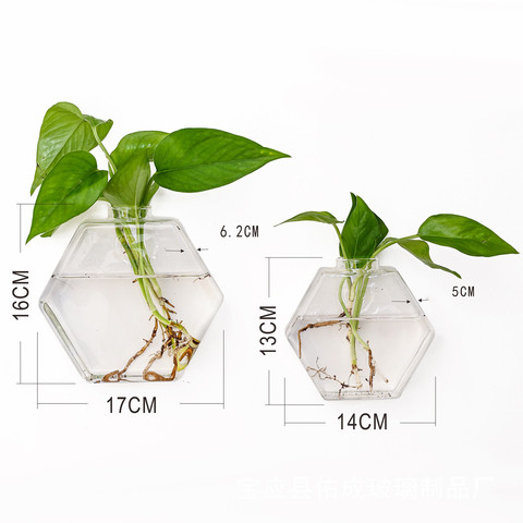 Terrario de vidrio hexagonal para colgar en la pared, jarrón de vidrio transparente, contenedor de vidrio para plantas suculentas