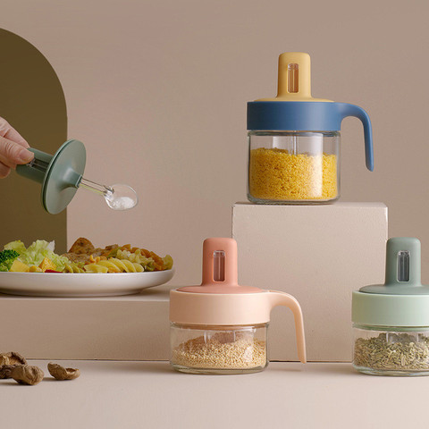 320ml 400ml cucchiaio scalabile barattolo di condimento cucina sicura bottiglia di vetro di sale a prova di umidità sigillata per uso domestico
